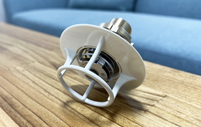 | 少量の水でも効果的に放水されます。 普段まったく気にならない小型モデルです。 72℃の熱を帯びなければ放水されず、もしもモノをぶつけても壊れにくい強固で安全な設計です。 |